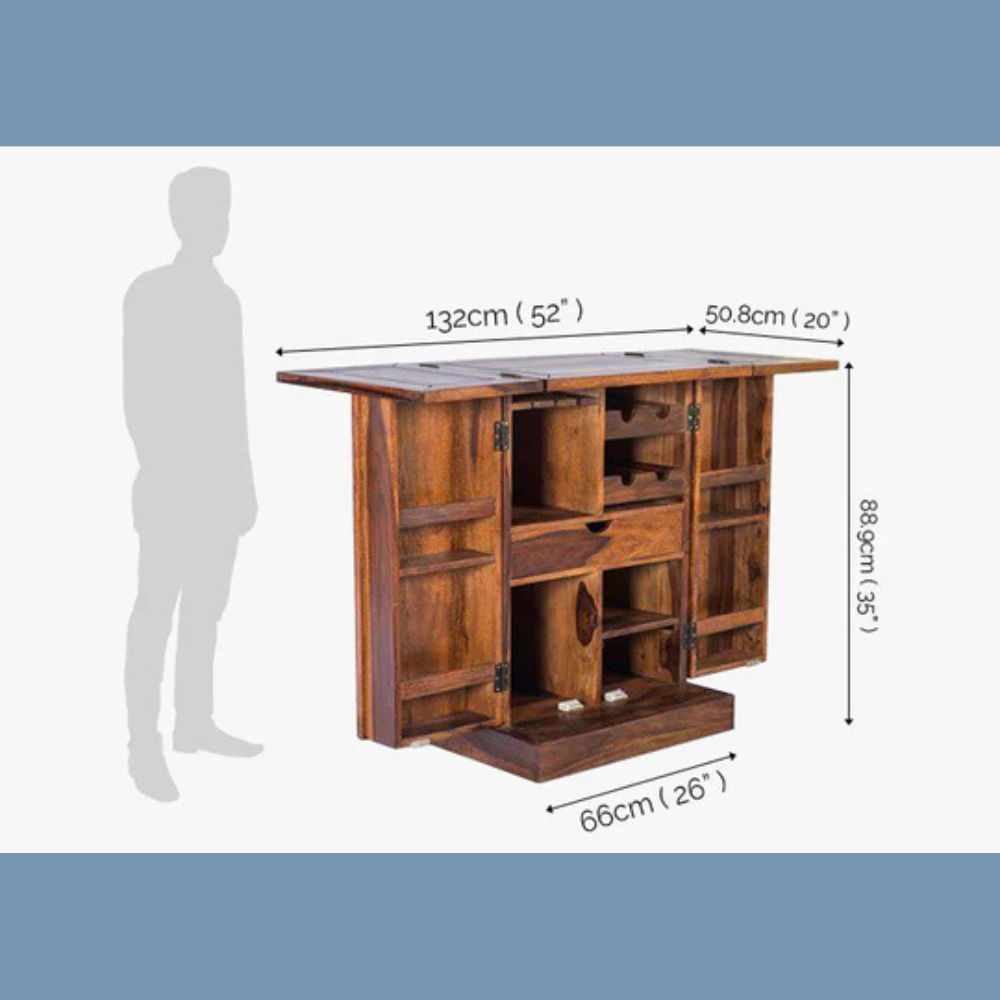 Elevate your home bar setup with the Natural Art & Crafts Handmade Teak Wood Bar Cabinet, a stunning blend of rustic elegance and modern design. This bar cabinet offers ample storage for your favorite wines, liquors, and glassware, making it the perfect centerpiece for any living room, dining area, or entertainment space. Expertly crafted from premium teak wood, this cabinet not only provides durability but also adds a timeless touch of sophistication to your home. The cabinet’s sleek design ensures it fits seamlessly into both classic and contemporary decor styles, offering both function and aesthetic appeal.