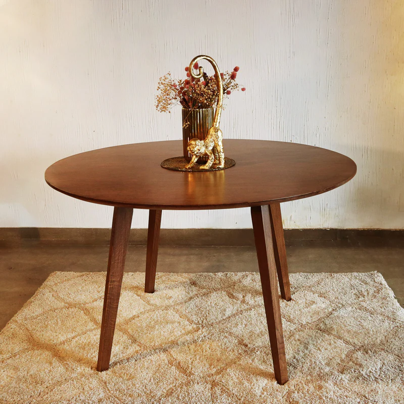 Elevate your dining experience with the Natural Art & Crafts Classic Handmade Teak Wood 4 Seater Round Dining Table Set. Crafted from premium teak wood, this set exudes timeless elegance and durability. Perfectly sized for cozy gatherings, it accommodates four comfortably. The smooth, polished surface showcases the natural grain of teak, adding warmth to any space. Whether for daily meals or special occasions, this dining set blends traditional craftsmanship with modern appeal.