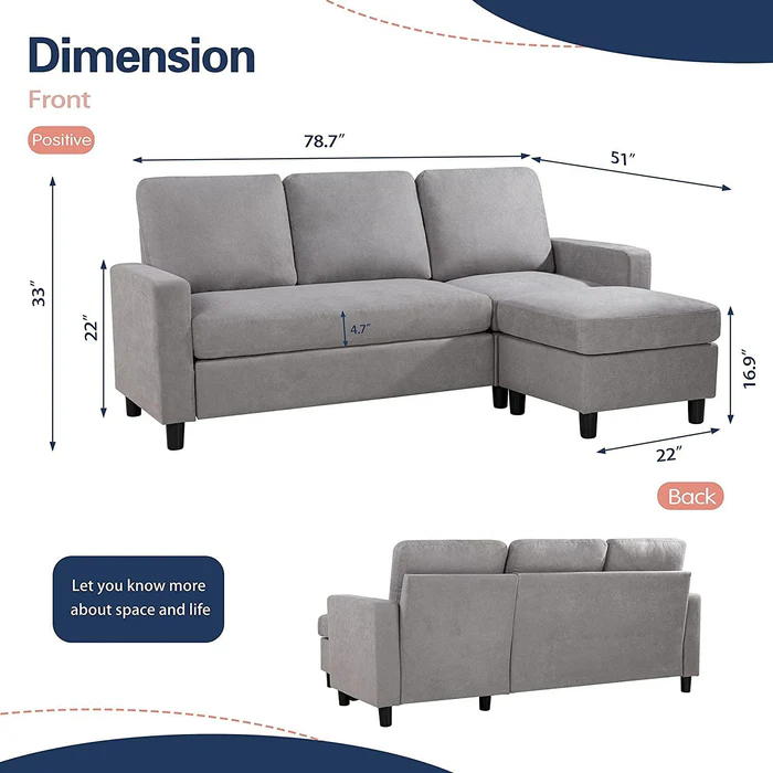 • Stylish L-Shaped Design: The L-shaped configuration is perfect for maximizing seating and fitting into corner spaces, making it an excellent choice for both small and large living rooms.