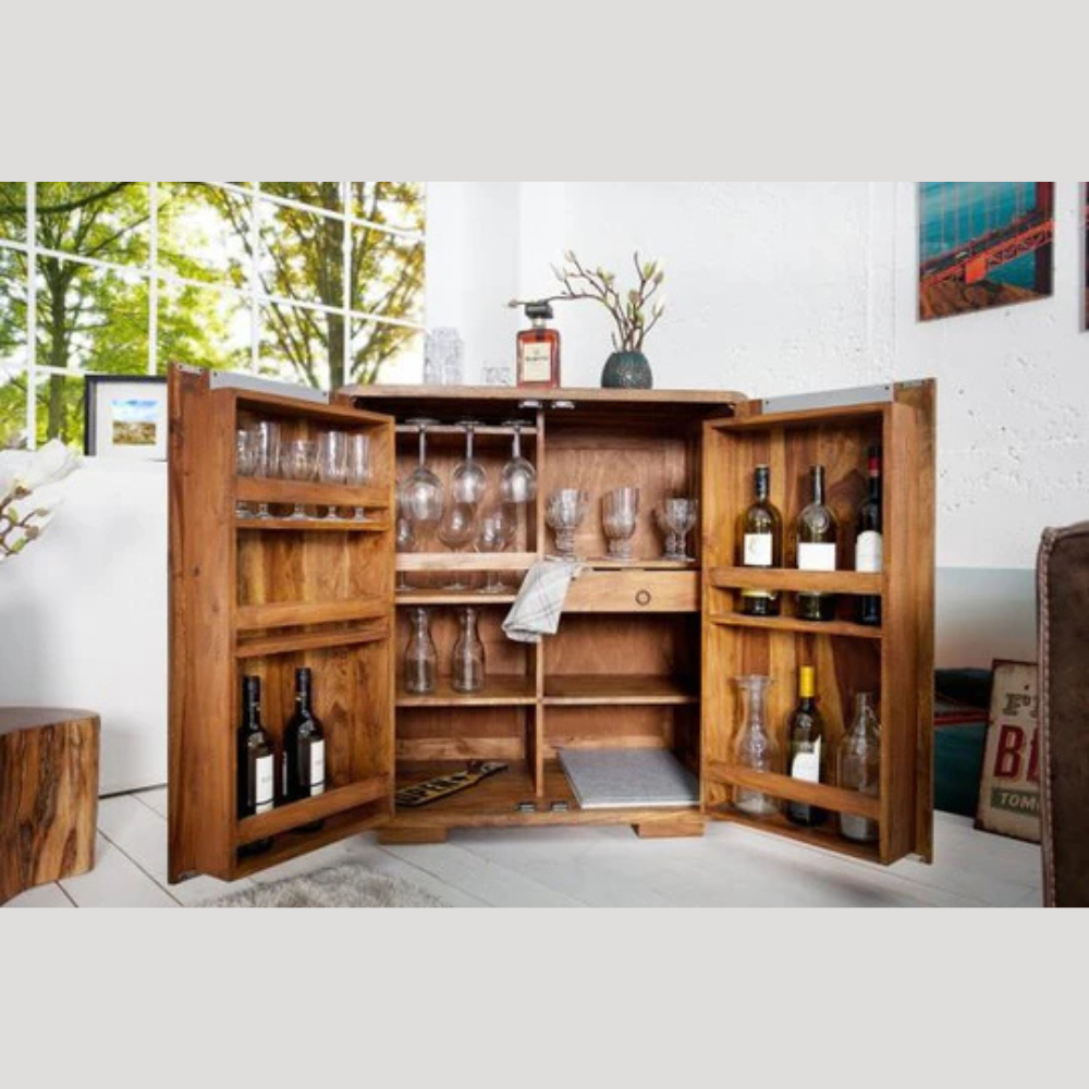 Enhance your home’s entertaining space with the Natural Art & Crafts Curved Handmade Teak Wood Bar Cabinet, meticulously crafted from premium teak wood to deliver both elegance and functionality. This beautifully designed bar cabinet features a unique curved shape that adds a modern touch to any room while offering ample storage for your wine, liquor, and glasses. The stylish doors not only elevate the aesthetics of your living space but also provide secure storage, keeping your items organized and easily accessible. With its rich brown finish and natural wood grain, this cabinet blends seamlessly into rustic, contemporary, or modern decor settings. Perfect for homeowners seeking a refined and practical solution for their home bar or dining area.