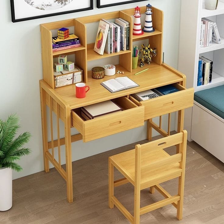 Deco Finished Study Table Desk seating option for any study or work area. Crafted from high-quality wood, such as oak, teak, or mahogany, this chair features a sturdy yet graceful design, with smooth, polished surfaces and a natural wood grain that adds a touch of warmth to the room. The chair typically offers a comfortable backrest and a well-designed seat, often with ergonomic contours to ensure long-lasting comfort during study or work sessions… Deco Finished Study Table Desk seating option for any study or work area. Crafted from high-quality wood, such as oak, teak, chair may include armrests, providing extra support, and is often paired with a cushioned seat for added comfort. Some designs feature decorative details, like carved elements or fine finishes, enhancing the overall aesthetic appeal. With a solid build and timeless design, this wooden study table chair is not only a practical addition to your study area but also a stylish piece of furniture that complements the décor of any space…!