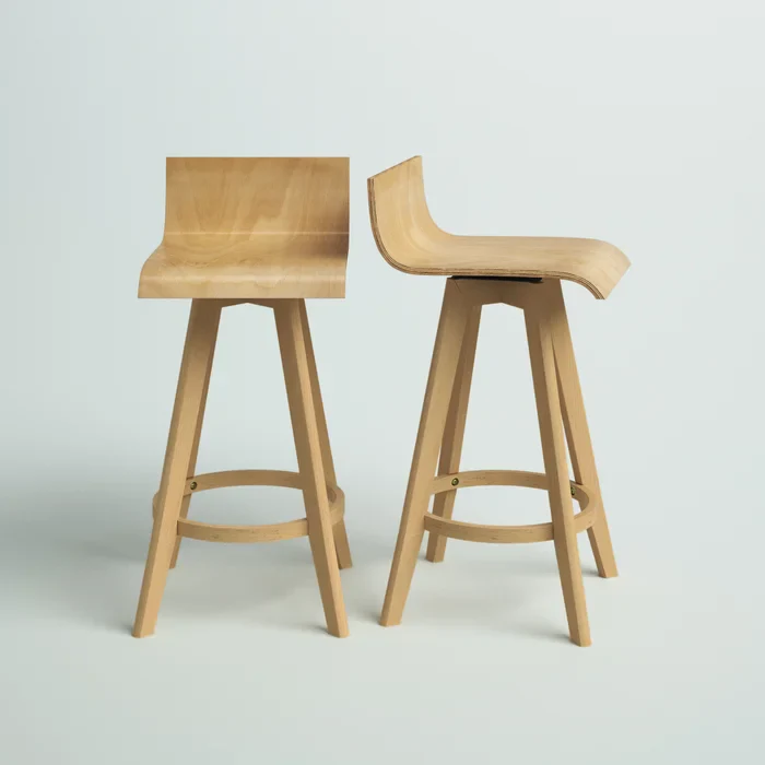 Elevate your home’s interior with the Natural Art & Crafts Dery Swivel Bar & Counter Stool Set of 2. These stools combine modern design with rustic charm, offering both style and function. The adjustable height feature makes them versatile for use at a bar, kitchen counter, or dining area, while the 360-degree swivel functionality provides ease of movement. Each stool has a sturdy metal frame that ensures durability and stability, paired with a comfortable, padded wooden seat for long-lasting support. Whether you’re hosting a gathering or enjoying a casual meal, these stools add a touch of elegance and comfort to any space.