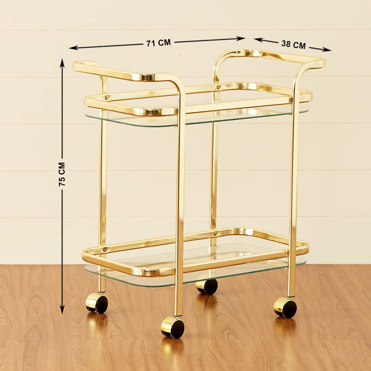 Elegance 2-Tier Mild Steel Montoya Bar Serving Trolley with Wheels ( Golden )