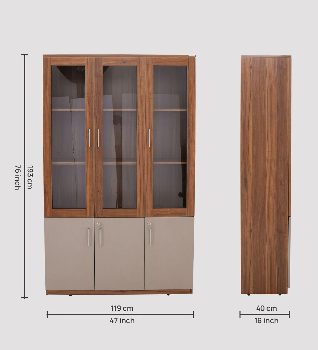 Genting Engineered Wood Handmade Bookshelf Rack for Library Home or Office Spiced Acacia with 3 Door