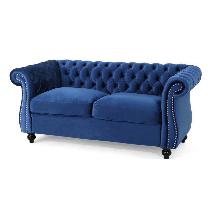Enhance your living space with the Natural Art & Craft Regal Premium Button Tufted Velvet Fabric Flared Arm Loveseat. This 2-seater modern sofa combines luxurious velvet upholstery with classic button tufting and flared arms, offering comfort and style. Perfect for small living rooms, apartments, or as an elegant addition to any home décor.