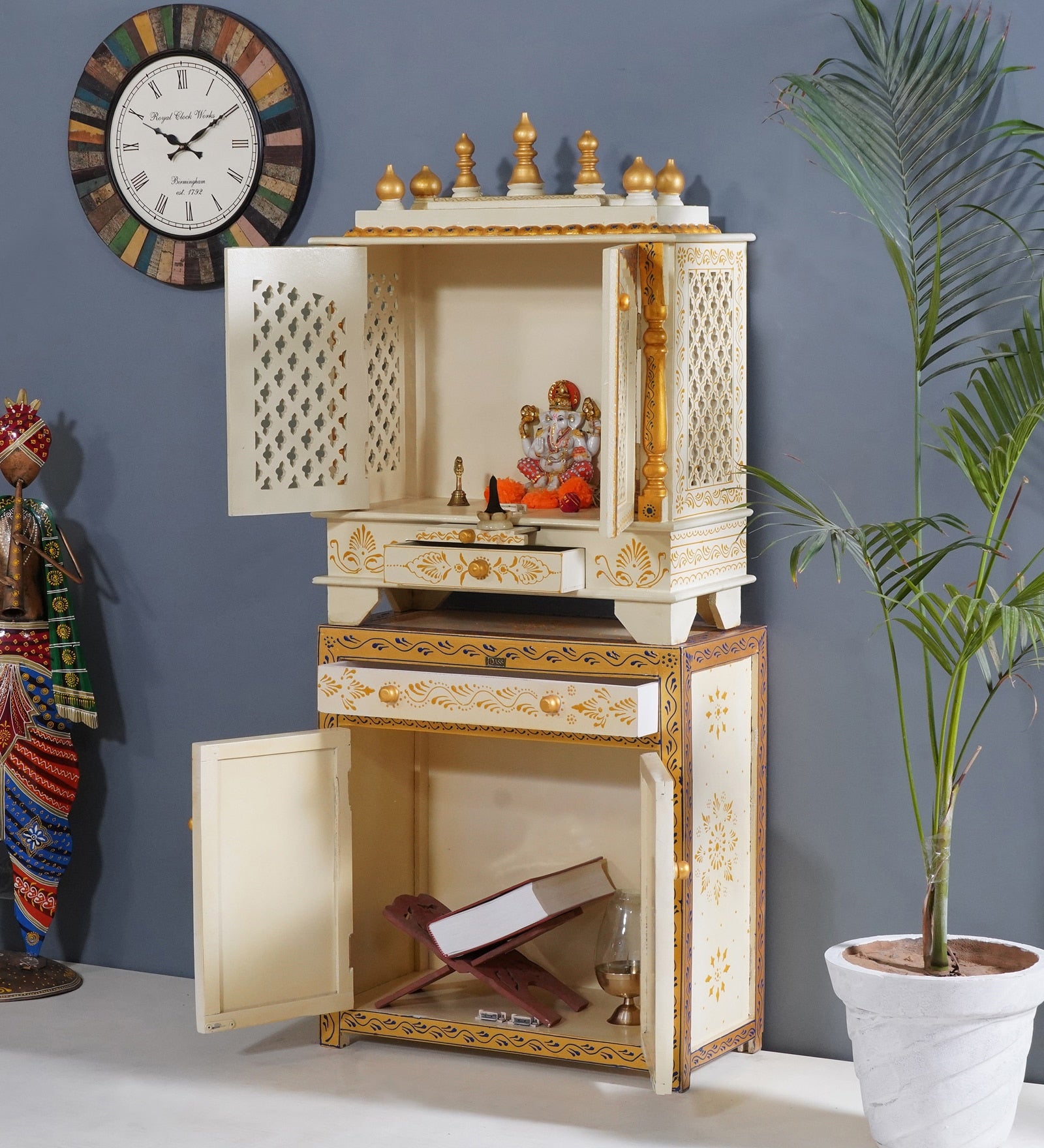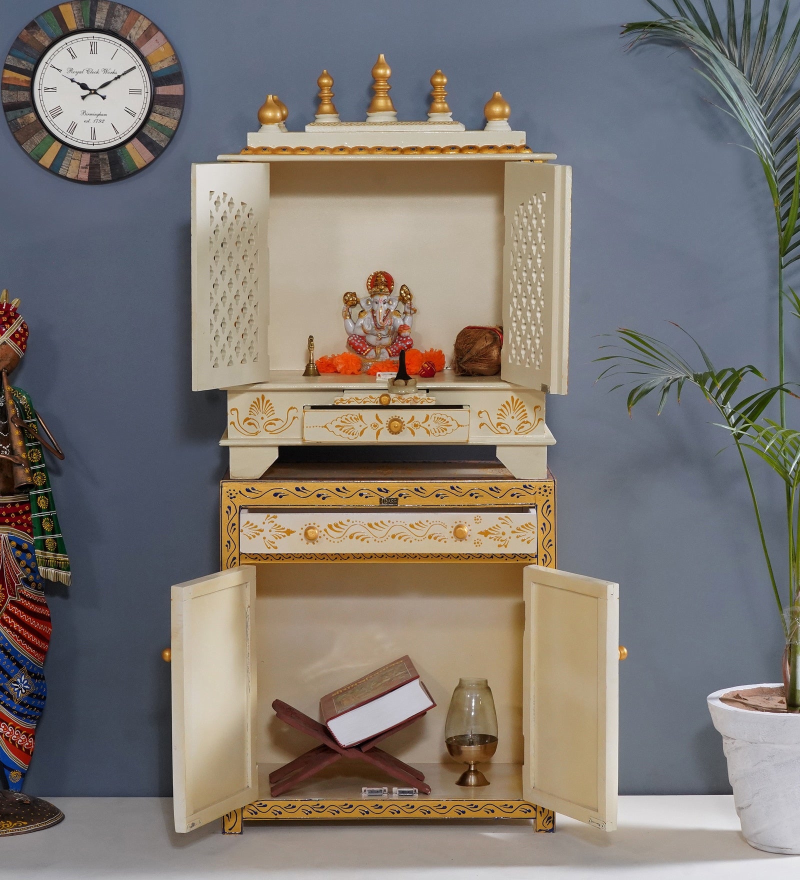 • Perfect for Daily Prayers: The spacious yet compact design allows for placing idols, incense, and other prayer essentials, ideal for everyday use.