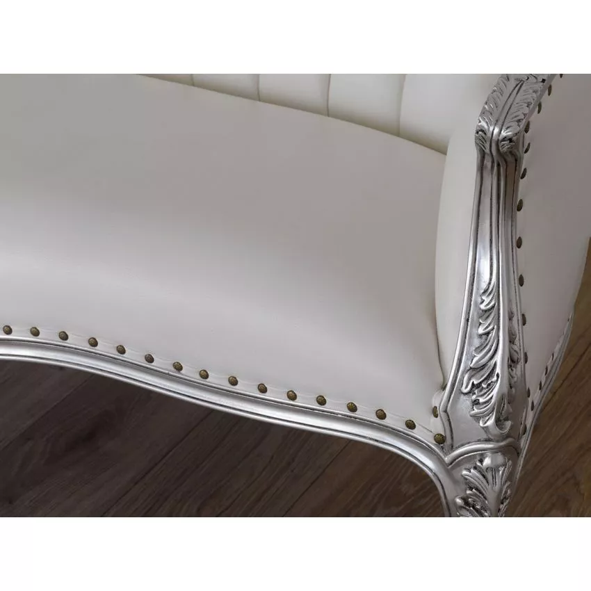 Elevate your living room with the Natural Art & Craft Megan French Baroque Style Chaise Lounge Sofa, a masterpiece that embodies luxury and sophistication. This exquisitely crafted 2-seater sofa seamlessly combines classic French design with modern comfort, making it an ideal centerpiece for any upscale interior.