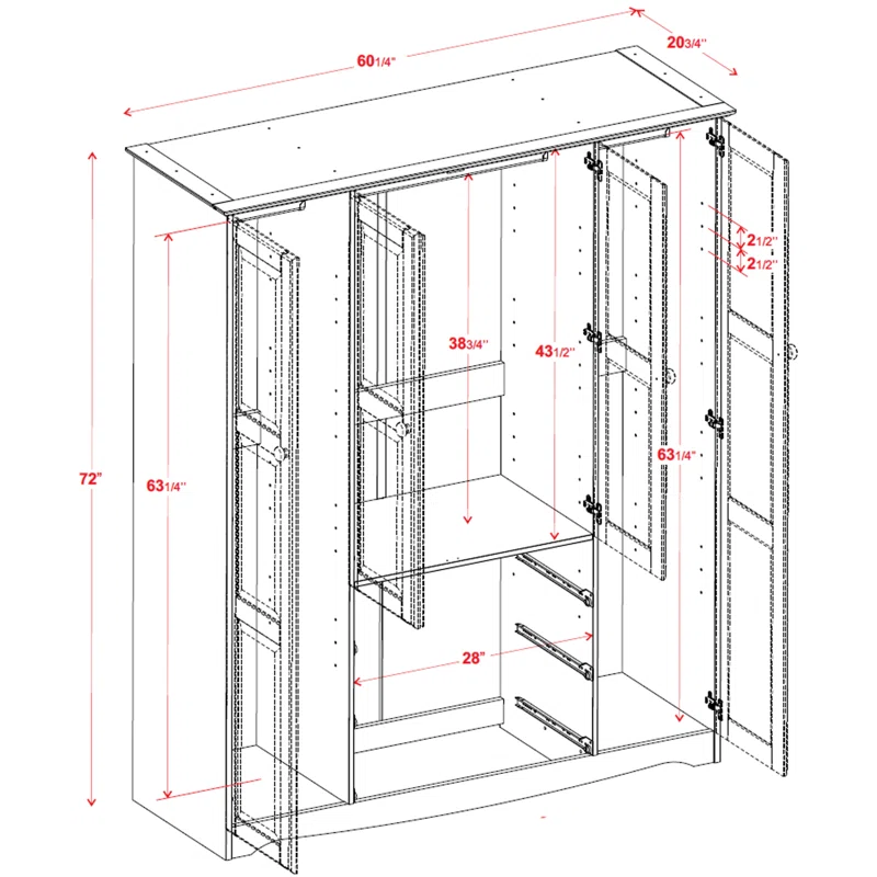 - Size – 72” H X 60.25” W X 20.75” D