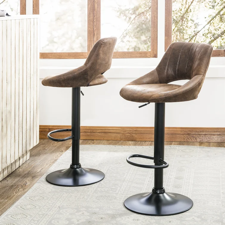 Enhance your home’s seating with the Natural Art & Crafts Newville Swivel Adjustable Height Bar Stool Set of 2, blending modern design with comfort and durability. These bar stools feature an adjustable height mechanism, making them ideal for use at a bar, kitchen island, or counter. The 360° swivel function allows for easy movement and socializing, while the padded wooden seat ensures maximum comfort. Crafted with a sturdy metal frame, these stools offer long-lasting support and a stylish touch to your dining or bar area. With their contemporary design and versatile features, these stools are a perfect fit for any modern or industrial-style space.