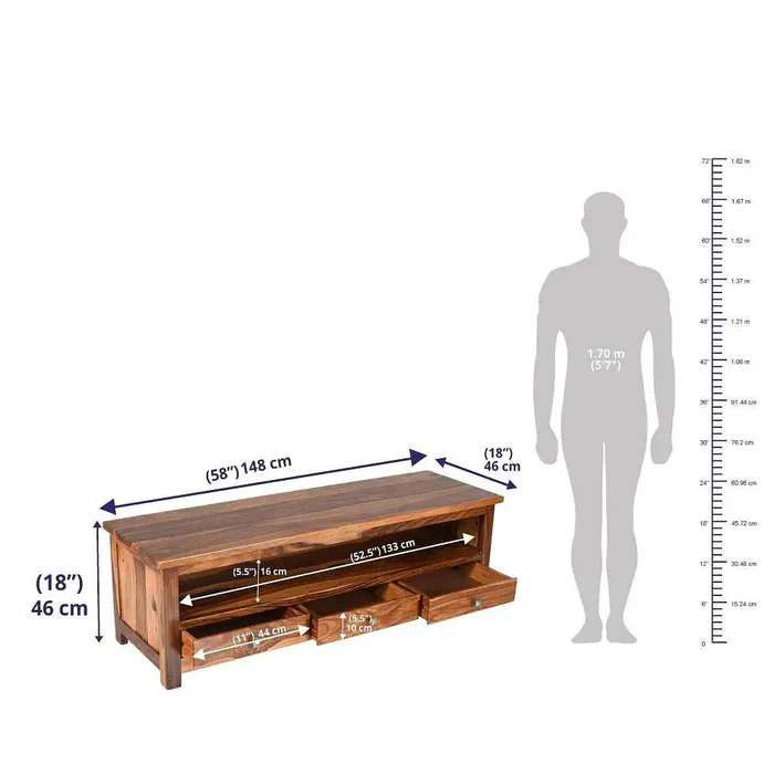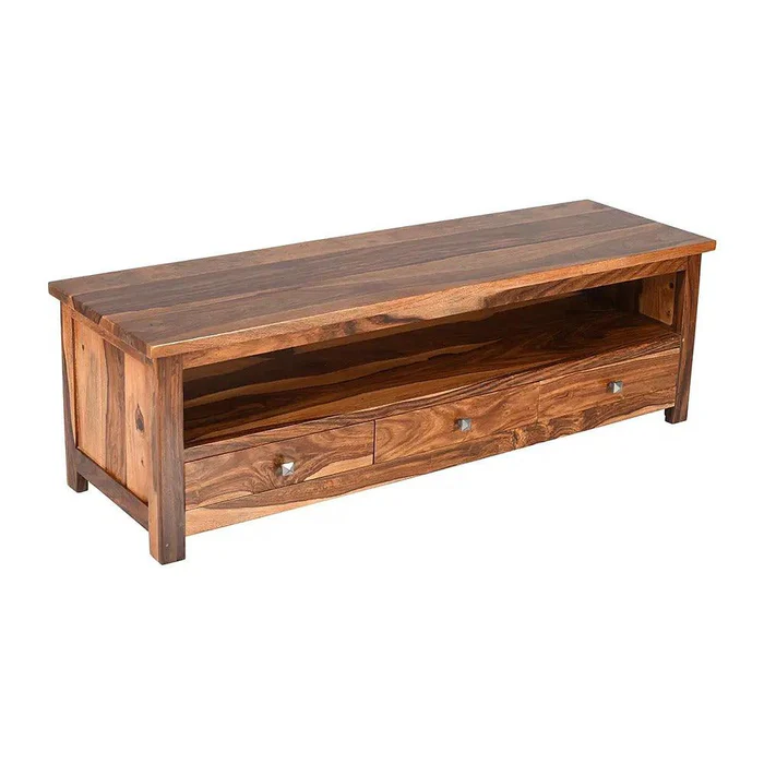 Elevate your living room décor with the Natural Art & Crafts Sheesham Wood TV Cabinet, a perfect blend of functionality and rustic elegance. Handcrafted from premium Sheesham wood, this TV cabinet features three spacious drawers for ample storage, ideal for organizing your media accessories, gaming consoles, and more. Its sleek design and natural wood finish make it a timeless piece of furniture that complements both modern and traditional interiors. Whether you’re looking to add a touch of rustic charm or seeking a durable solid wood entertainment center, this TV cabinet promises style and longevity.