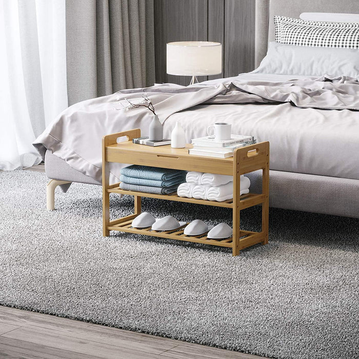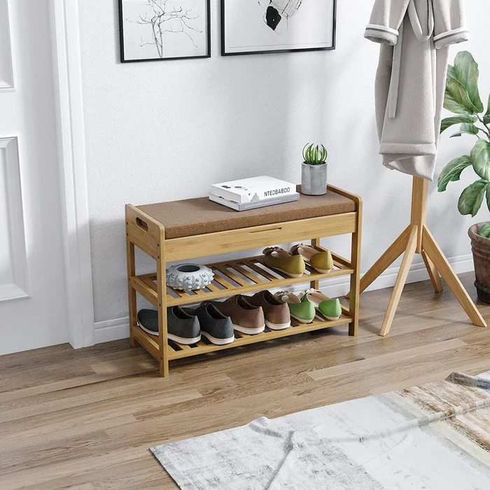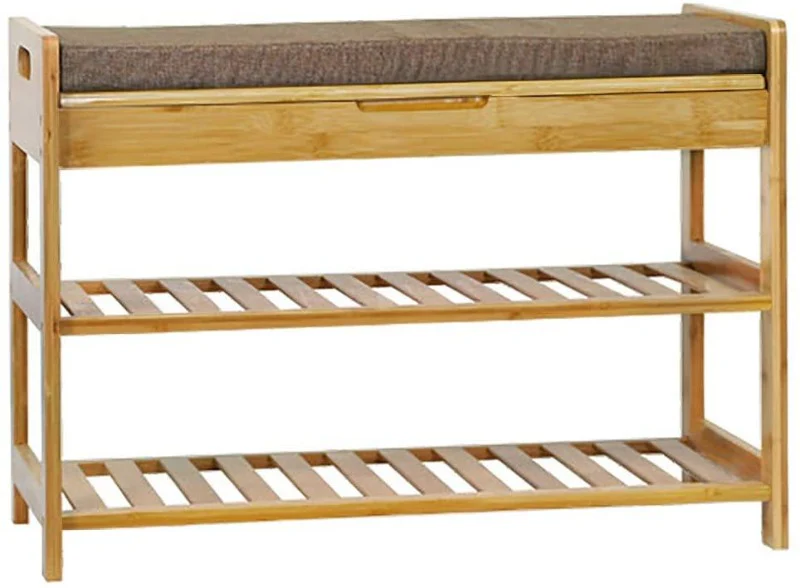 Stylish 3- Tier Organizer In Bamboo Wood Shoe Rack Bench with Cushion