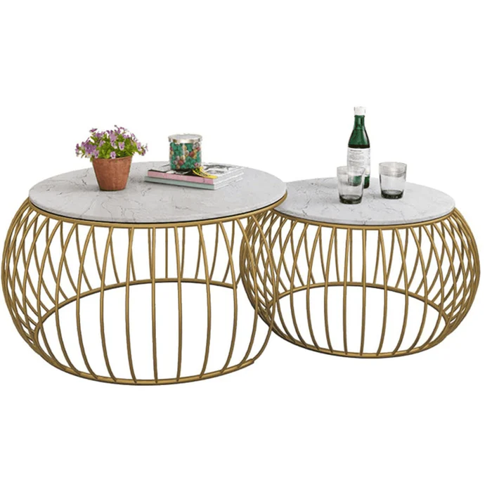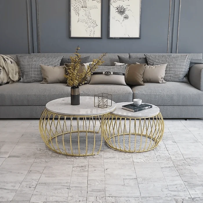 Sylena Round Coffee Table with Marble Top-Like Finish for Modern & Elegant Living Room ( Set of 2 )
