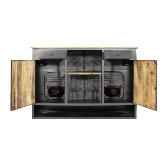 Add a stylish, rustic charm to your living room or dining space with the Natural Art & Crafts Truck Design Handmade Wooden Bar Cabinet. This unique handcrafted bar cabinet, shaped like a vintage truck, serves as a conversation piece while providing ample storage for wine, whisky, and other drinks. Its compact size makes it perfect for small spaces, yet it’s spacious enough to hold bottles, glasses, and bar accessories. Whether you’re entertaining guests or enjoying a quiet night in, this black wooden bar cabinet offers both functionality and flair, making it an ideal addition to any home bar setup.