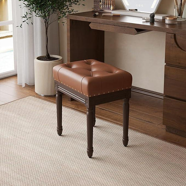 The Natural Art & Crafts Vintage Tufted Design Square Faux Leather Ottoman Stool (Brown) adds a touch of elegance and functionality to any living space. With its vintage-inspired tufted design and luxurious faux leather upholstery, this ottoman serves as both a stylish décor piece and a comfortable footrest or additional seating option. Perfect for living rooms, bedrooms, or offices, its compact size makes it versatile for small spaces, while the rich brown color seamlessly blends with modern, vintage, and classic interior styles. Crafted with sturdy materials, this faux leather ottoman is designed for durability and long-lasting use. Whether you’re using it as a footrest, extra seating, or a decorative accent, this ottoman stool will elevate the ambiance of your space.