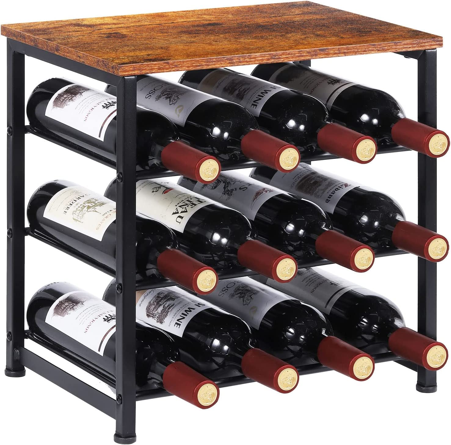 Wine Racks Countertop Rustic 12 Bottles Wine Holder Stand Small Freestanding Wine Bottle Organizer Holder